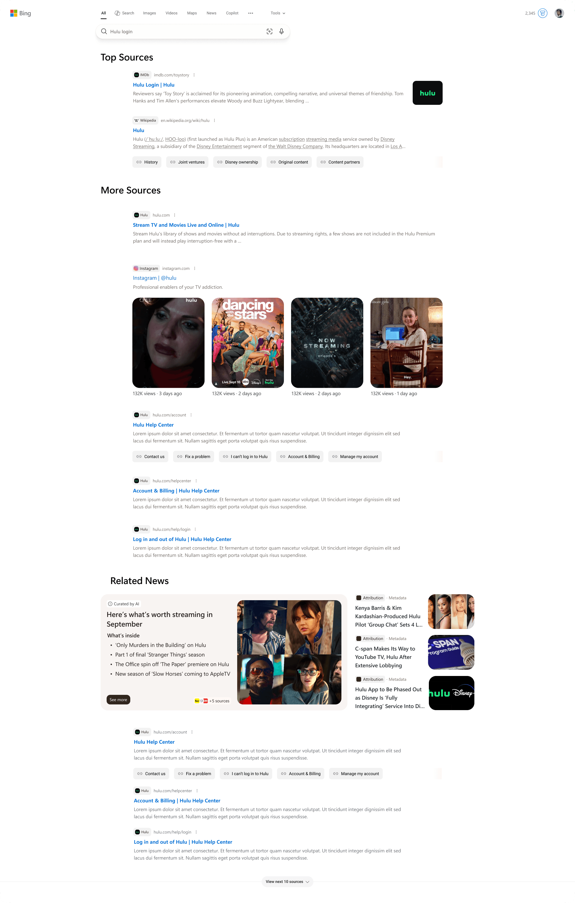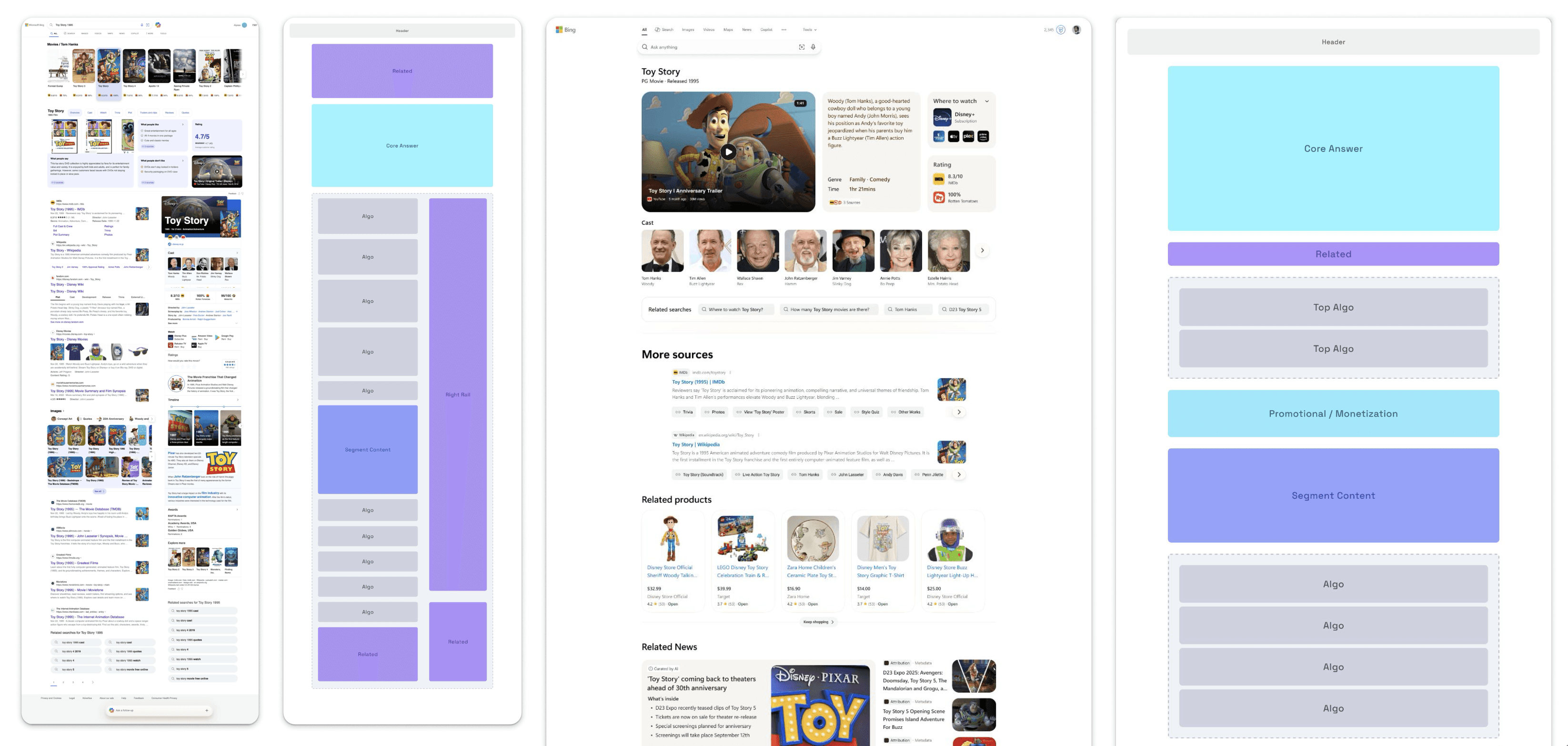 At the time of our audit, Bing users struggle wit h inconsistent answer layouts and information density. They often have to “filter ” through content to find what they ’re looking for. Bing is consistent ly shape-shifting within linked experience queries and dozens variations of designs for similar answer cards. Our goal is to shift focus to clarity and simplification within design.